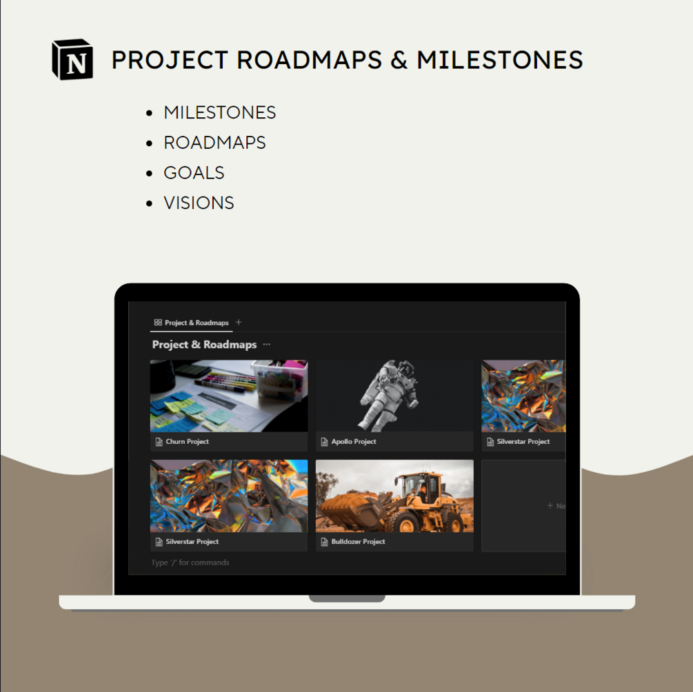 - Project Roadmaps: A page for visualizing and tracking progress against project milestones and deliverables.